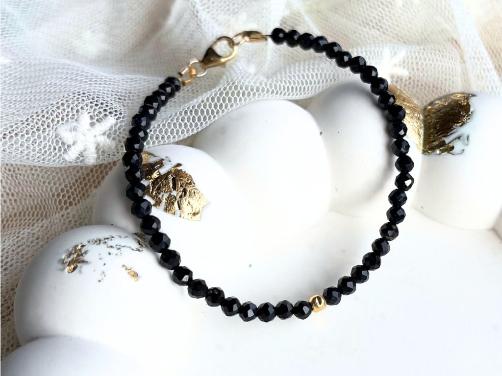 Náramek s onyxy a "Gold filled" korálkem - BLACK ONYX POWER