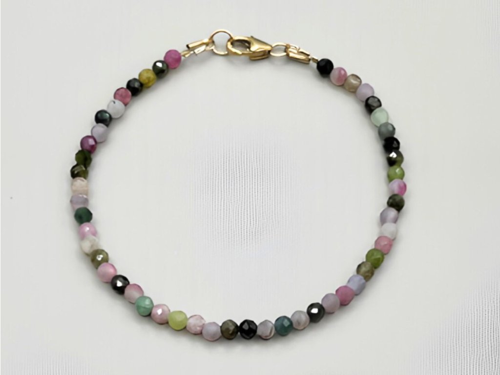 Jedinečný Turmalín Gradient vykouzlí vždycky tu nejkrásnější barevnou paletu, a pokáždé jinou. Obzvlášt, když dostane tolik prostoru, jako u tohoto náramku. Díky tomu je každý jeden kus originál.
