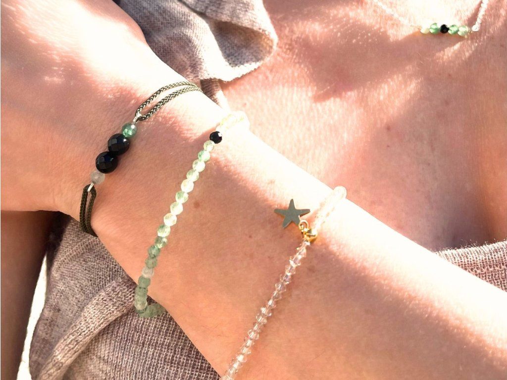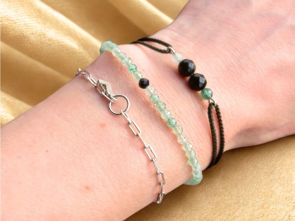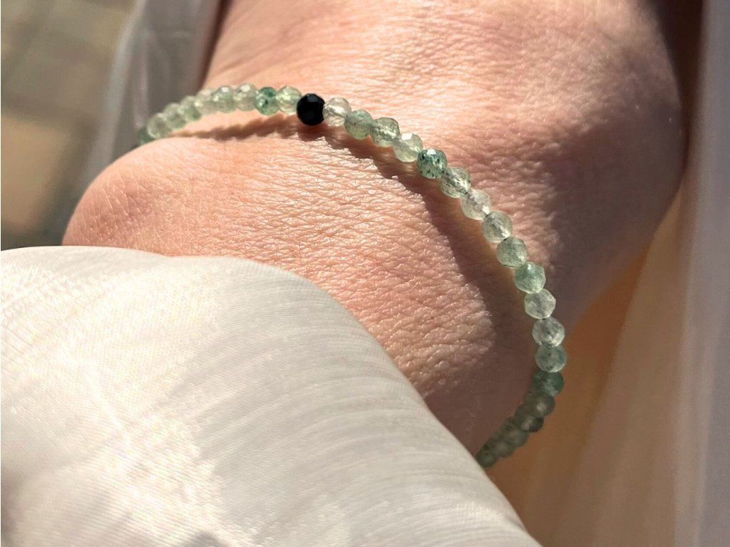 Použité minerální korálky mají velikost 3 mm. Náramek je tedy jemný, decentní a vhodný i k vrstvení s dalšími náramky.