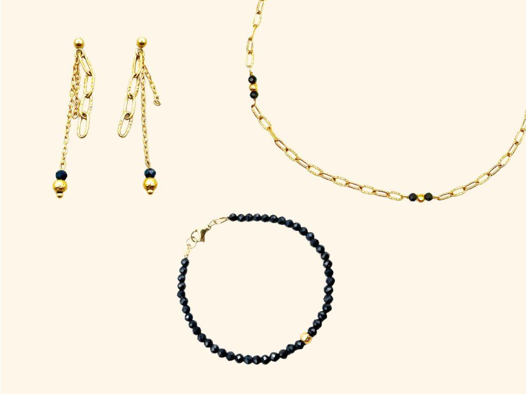 Kdo by nemiloval ikonickou kombinaci Golden & Black? Pořiďte si celý set 3 šperků BLACK ONYX POWER za ZVÝHODNĚNOU CENU a staňte se královnou večera.