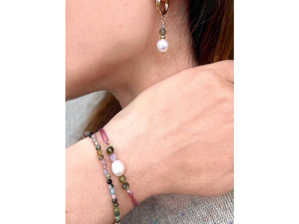 - Materiál: broušené korálky Turmalínu Gradient, říční perly, nerezová ocel pozlacená 18 kt zlatem
