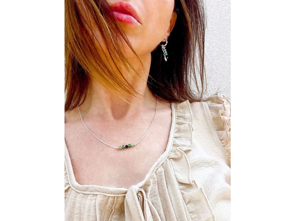 Náhrdelník z řady GREEN QUARTZ ENERGY představuje skvělou volbu šperku na každodenní nošení. Decentní s jemným detailem broušených korálků Zeleného křemene a onyxu.
