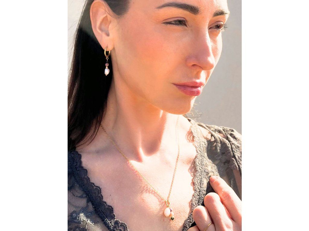 - Materiál: broušené korálky Turmalínu Gradient, říční perla, nerezová ocel pozlacená 18 kt zlatem